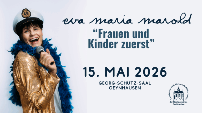 In „Frauen und Kinder zuerst“ nimmt Eva Maria Marold die Besucher mit auf eine humorvolle, ironisch und sarkastische Reise auf dem Kreuzfahrtschiff „Costa Dekandenzia“. Die Luft auf Hoher See ist rau. Der Umgangston manchmal auch. Und der Unterschied zwischen „sinGen“ und „sinKen“ ist ein klein, aber sehr wesentlich.